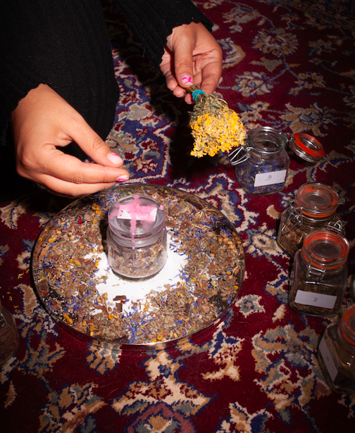 The workshop Tangible Magic was designed for Rotterdam’s William de Kooning students. It was delivered as part of programme on embodied knowledge during which different artists were invited to present their practices. The workshop circulated around the research on the notion of rejection of knowledge in the context of magic, but also urged to spread magical knowledge in practice — through embodied and intuitive forms. The students were invited join a ritual of herbal talisman making. We’ve discussed how talismans can be used to serve individual, collective or even political intensions and how specific herbs can be used in everyday life for protection, health and well-being. The workshop was accompanied by a lecture on witch-hunts, occulture and the struggle over magic.